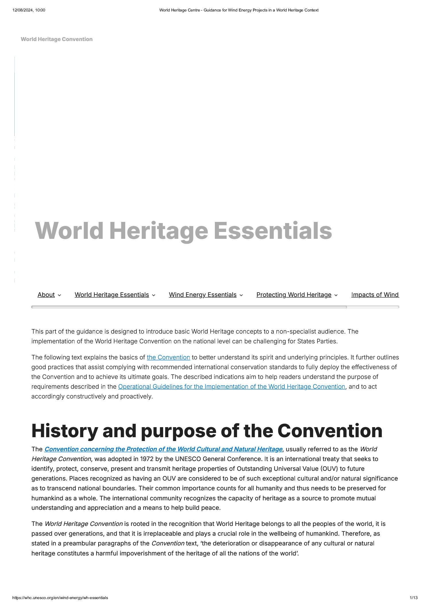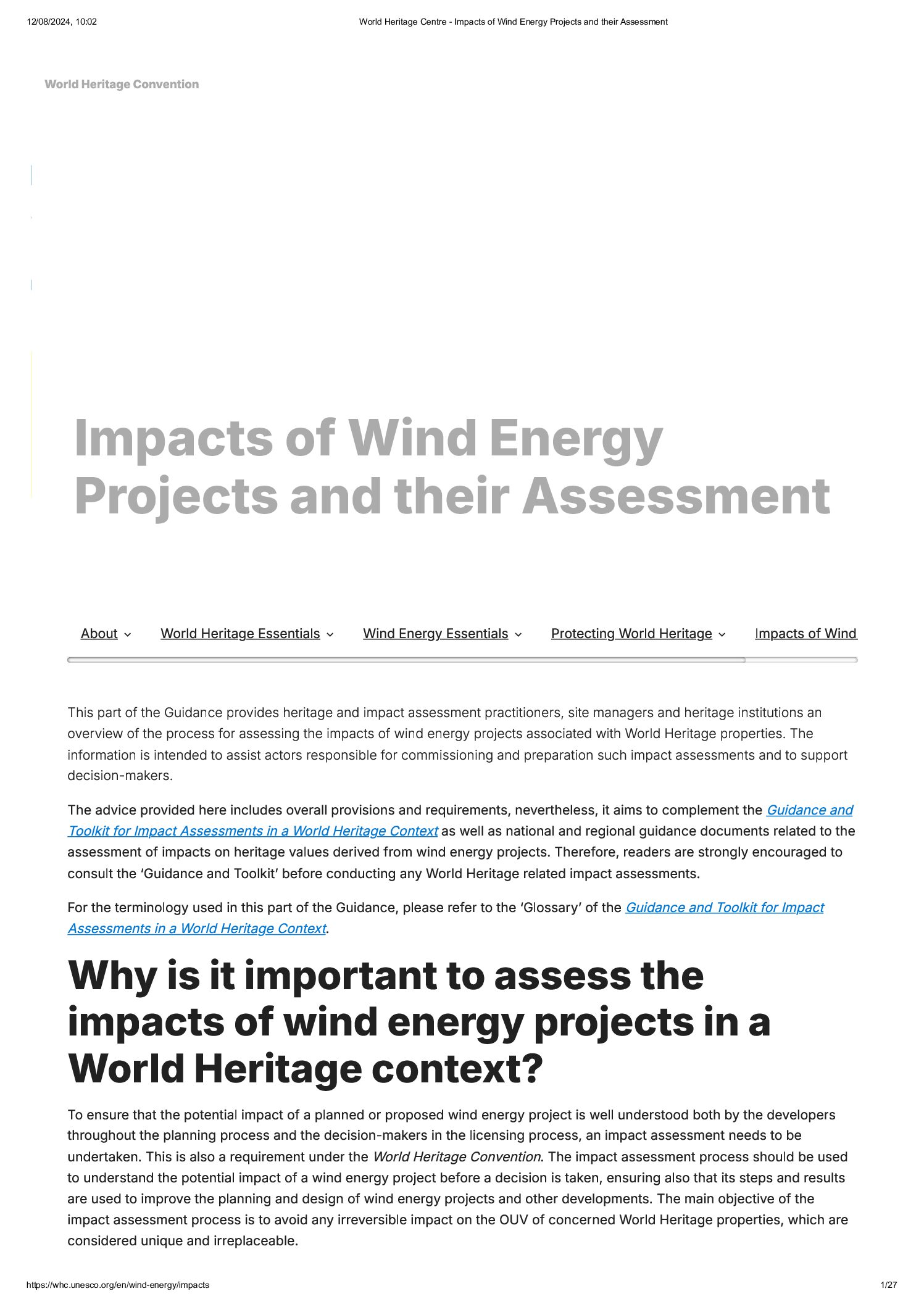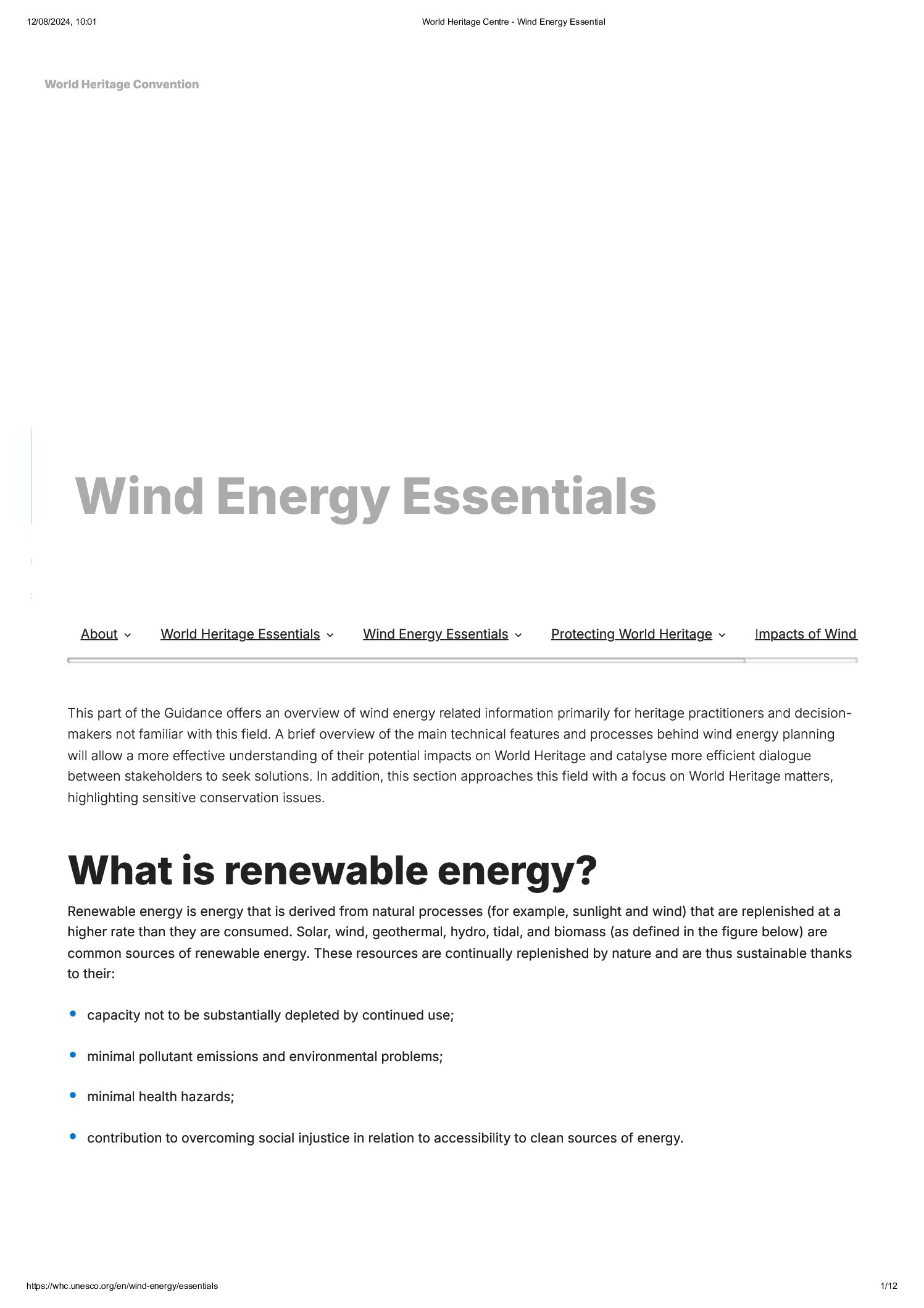 UNESCO Guidance for Wind Energy Projects in WHS - Wind Energy Essentialss
