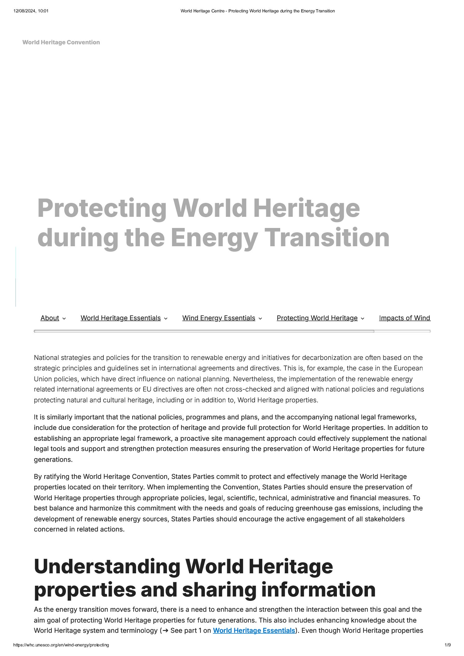 UNESCO Guidance for Wind Energy Projects in WHSs - Protecting WH during the Energy Transition
