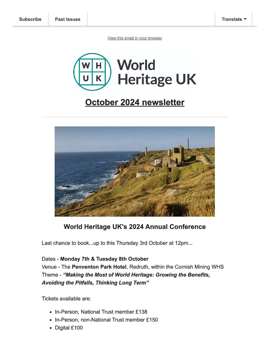 Download PDF 1.45 MB2022 Annual Conference: “Celebrating 50 years of World Heritage, and looking ahead to the next 50” - Monday 3rd & Tuesday 4th October 2022