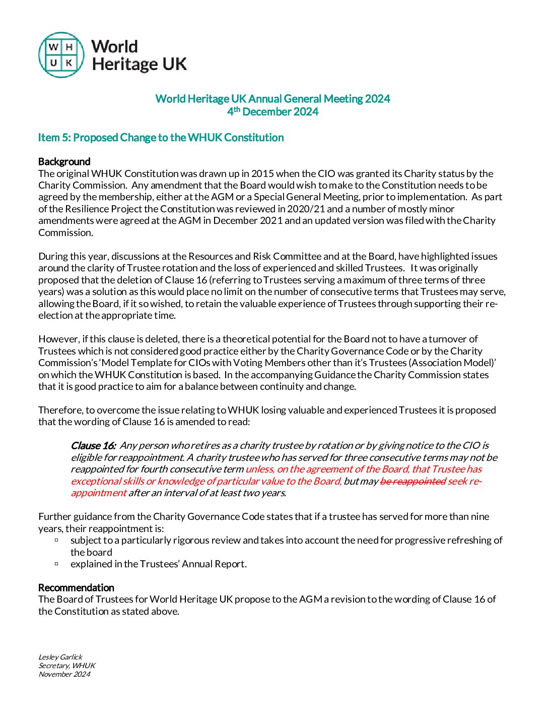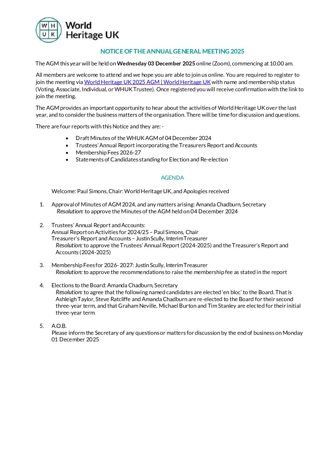 Information on putting forward nominations for the WHUK Board at the 2022 AGM