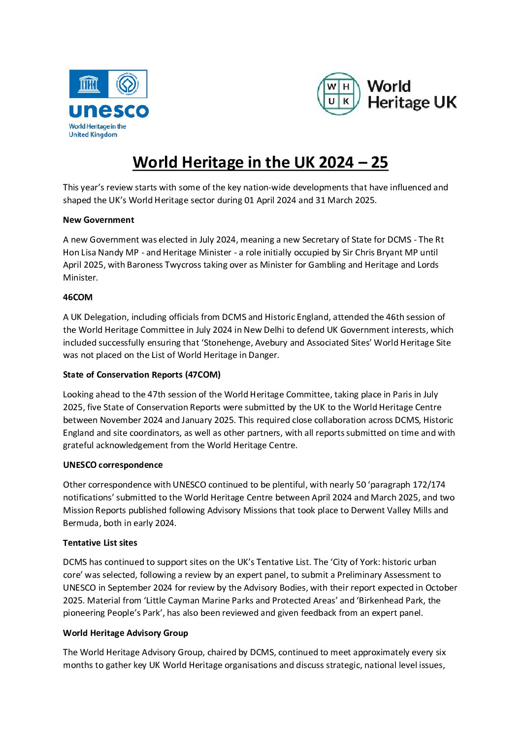 Download PDF 730.17 KBNovember this year will see the 40th anniversary of inscriptions to the World Heritage List of the UK’s first World…